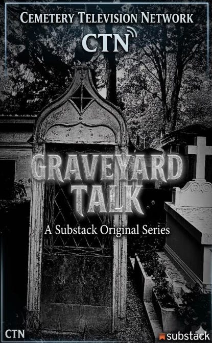 “Graveyard Talk is brought to you by Mortimer Black and the Department of Preternatural Studies. Mr. Black accepts no responsibility for possession, hauntings, or unexplained phenomena.”